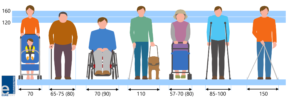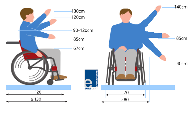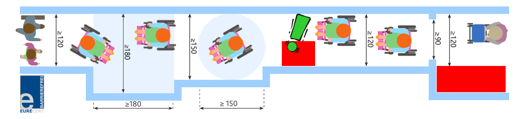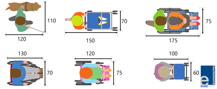 Abb.: © EUKOBA e.V./EURECERT® - Bewegungsflächen für verschiedene Hilfsmittel