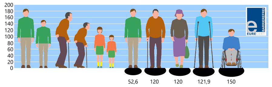 Abb.: © EUKOBA e.V./EURECERT® - Körperproportionen und Bewegungsflächen unterschiedlicher Menschen